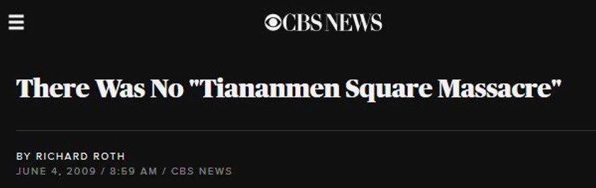- “…CBS NEWS: “We saw no bodies, injured people, ambulances or medical personnel — in short, nothing to even suggest, let alone prove, that a “massacre” had occurred in [Tiananmen Square]” — thus wrote CBS News reporter Richard Roth”