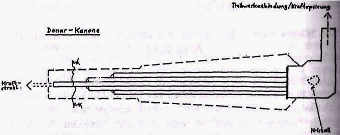 Kraftstrahlkanone or a Strong Ray Canon from schematics reproduced by yet another Nazi secret weapon researcher; Henry Stevens, as it is shown in Joseph Farrell’s Reich of the Black Sun.