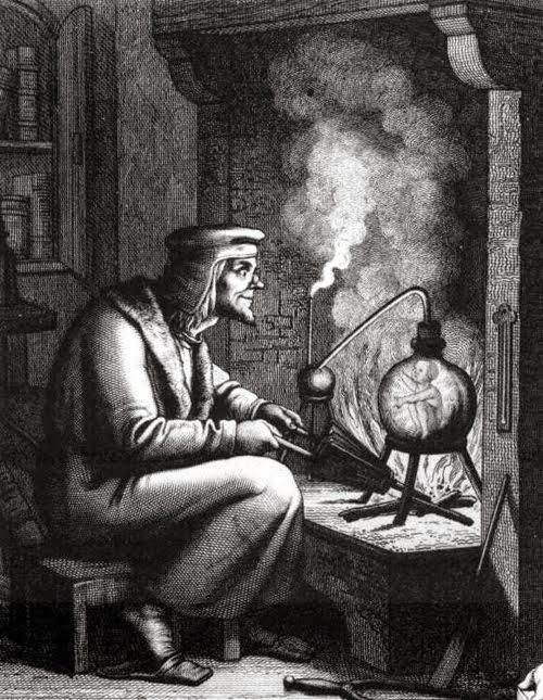 In 1952 Parsons, who in letters addressed Crowley as “Most Beloved Father” and would recite Crowley’s Hymn to Pan before each test launch, is said to have perished in a lab explosion. His body was burned beyond recognition. A few hours later Parsons beloved mother would commit suicide. They were both buried in closed coffins fueling conspiratorial speculation that neither was dead. Journalist Michael Hoffman II has said that Parsons was trying to conjure a homunculus when the lab explosion took place. A homunculus is an ethereal being that the master alchemist grows in a jar. It knows many secrets of the universe which it will impart to the alchemist who creates it. On the dark side of the moon there is a crater named after Jack Parsons.