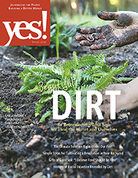 Reading the current issue of YES! highlighted with special clarity the implications of the disconnect between money and well-being. The theme of the issue is “Dirt,” and it emphasizes the nature and importance of the living soil on which our well-being depends. It includes inspiring stories from farmers restoring and nurturing the health of soils that previous human abuse destroyed.