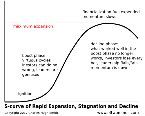 Discoveries of new super-giant oil fields has petered out. The planet has been scoured and there are no more. As for financialization, boosting debt and leverage are now negatives, not positives. There will be no miracle-save by expanding debt, leverage and speculation.