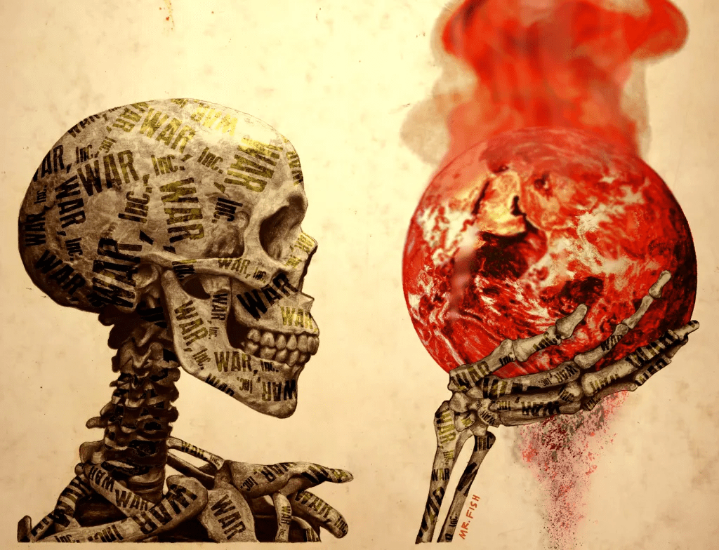 Testosterone poisoning. Agreed that the US has been a war machine since before the Constitution gave the political entity pseudo-legitimacy. Dig deeper to find that war is and always has been a man’s game. The herd instinct that generates war fever, violent contact sports or the “barbarian” raids of ancient history thrives under the illusion that “might makes right”, an attitude that glorifies brawn over brains.