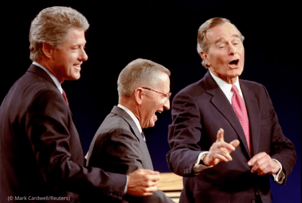 As a spoiler candidate during the 1992 campaign, Perot was subjected to media smear attacks, and FBI surveillance and harassment, forcing him to drop out.Stocks that he traded in were manipulated and a doctored photo was produced of his daughter Caroline kissing another woman just before her wedding, making her appear to be lesbian (which was taboo at the time).
