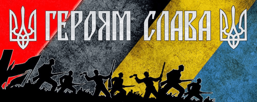 The above OUN-B flag (also used by their paramilitary unit UPA: Ukrainian Insurgent Army) is known as the ‘Blood and Soil’ flag. The ‘Blood and Soil’ nationalist slogan originated in Nazi Germany to express its ideal of a racially defined national body (blood) united with a settlement area (soil). It is also why Ukrainian neo-Nazi groups that formed from 1991 onward (after Ukraine’s independence from the USSR), more often than not, also use the tryzub.